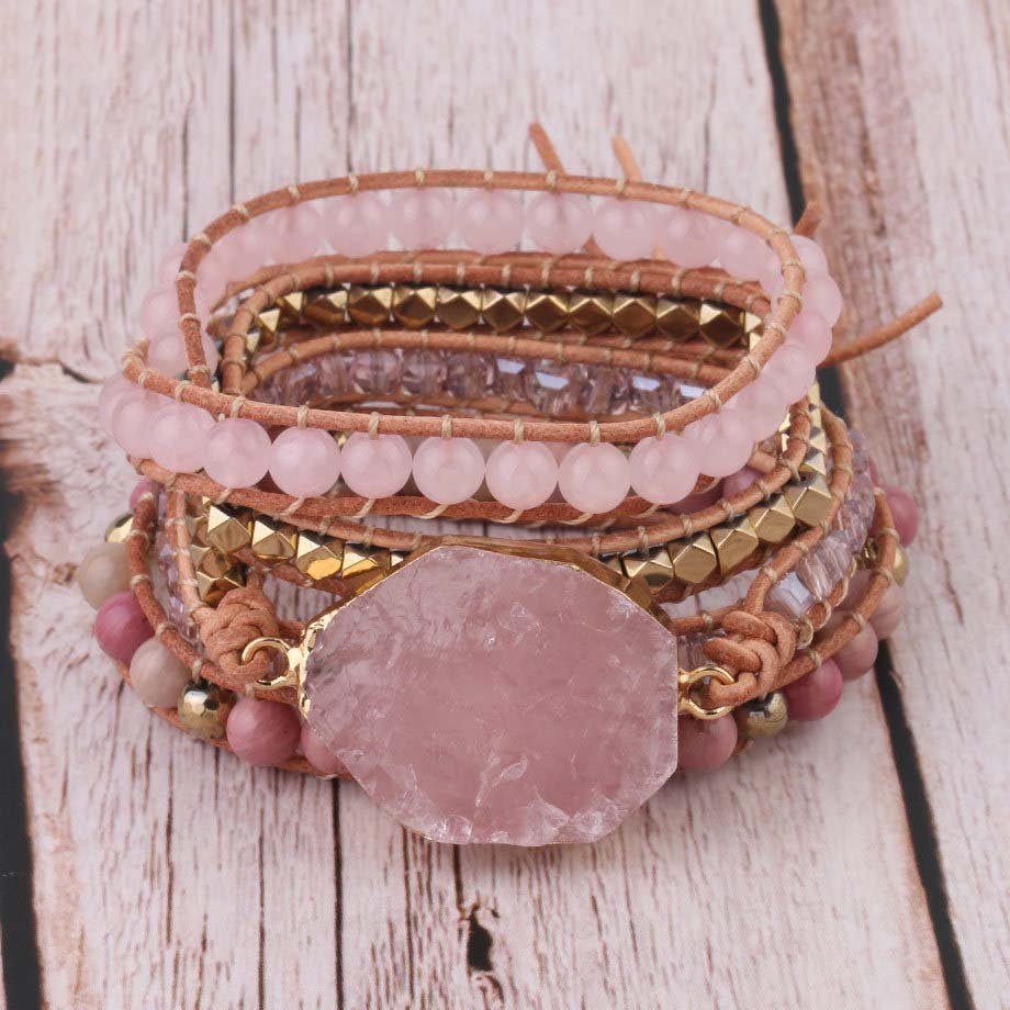 Be the first to review “5 layer rose quartz Woven Bracelet”