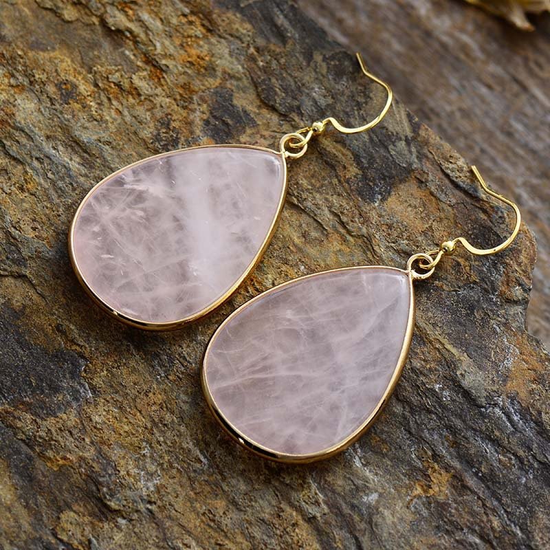 Style:Bohemian Stone:Rose Quartz MQQ:2 PCS Package Jewelry: 1 * PCS Crystal Earring