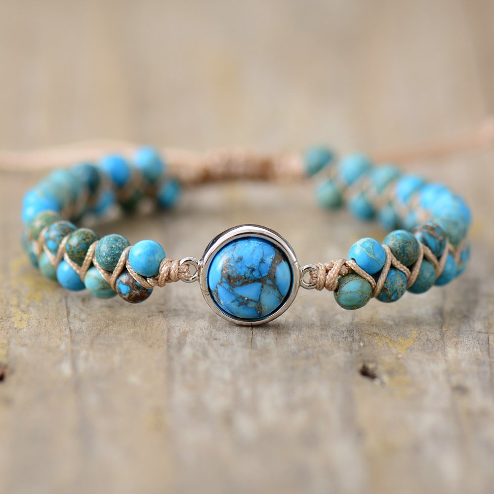 Style:Bohemian Stone:blue turquoise MQQ:2 PCS Package Jewelry: 1 * PCS Crystal Bracelet