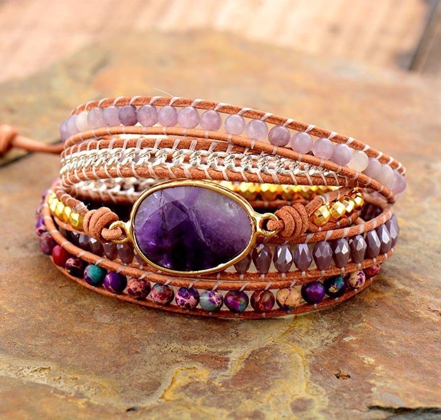 Style:Bohemian Stone:amethyst MQQ:2 PCS Package Jewelry: 1 * PCS Crystal Bracelet