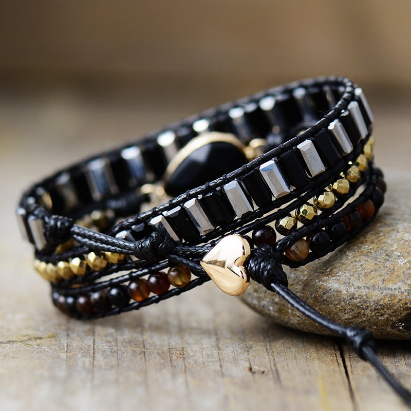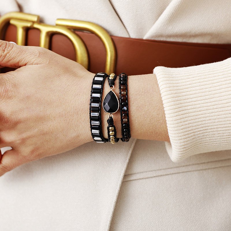 Style:Bohemian Stone:Black agate MQQ:2 PCS Package Jewelry: 1 * PCS Crystal Bracelet